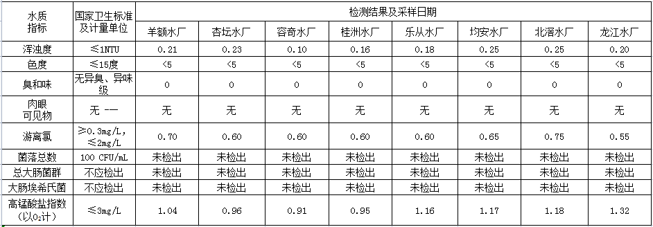 一、出厂水9项水质情况(采样日期:2025年10月17日)