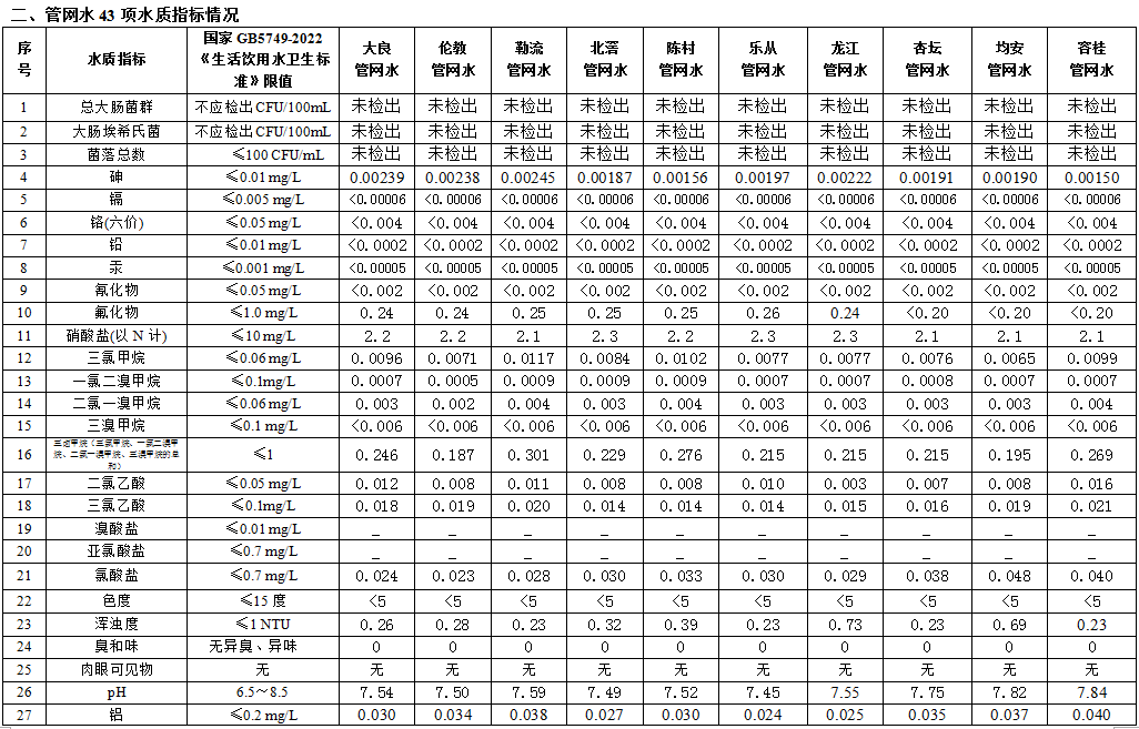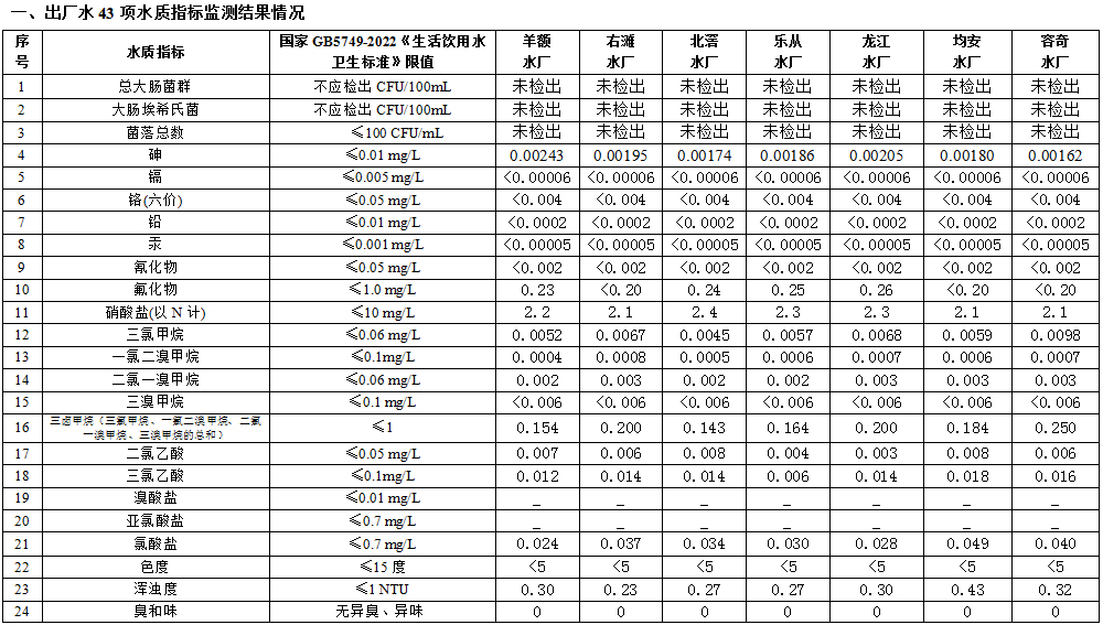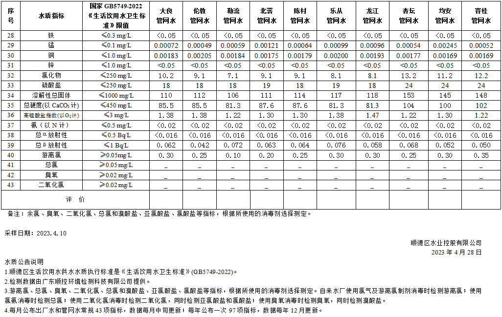 2023年4月顺德区供水水质月度公告