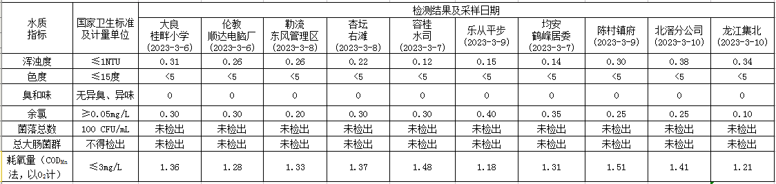 一、出厂水9项水质情况(采样日期:2023年3月10日)