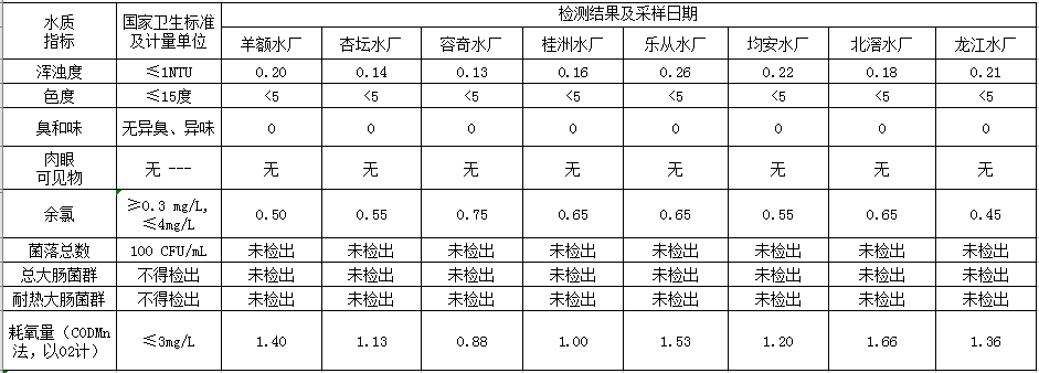 一、出厂水9项水质情况(采样日期:2023年3月31日)
